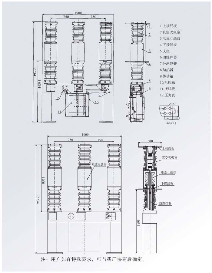 1、采用真空滅弧室,用SF6氣體作為輔助絕緣介質(zhì),配彈簧操動機構(gòu),實現(xiàn)了全無油化;