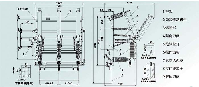 該戶內高壓交流真空負荷開關(熔斷器組合電器)適用于額定電壓40.5kV三相交流501h的供電網(wǎng)絡中,作為開斷負荷電流、過載電流及短路電流之用。尤其適用于無油化,不檢修及頻繁操作要求的場所。