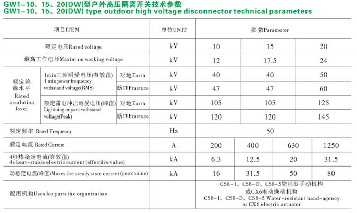 其他型號:GW1-10/200、GW1-10/400A、GW1-10/630A、GW1-10/1250A