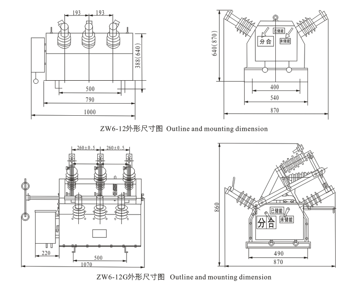 斷路器配用CT23彈簧操動(dòng)機(jī)構(gòu),可實(shí)現(xiàn)電動(dòng)儲(chǔ)能、電動(dòng)分合閘,也可手動(dòng)儲(chǔ)能和手動(dòng)分合閘。
